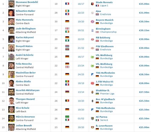 多特作为著名的球星加工厂,没有过大手笔买人的记录,他们更多的是选择引进有潜力的年轻球员,再从中赚取转会差价。多特此前的标王是3500万引进的登贝莱,球员转会至巴萨时多特收回了1.35亿欧的转会费。